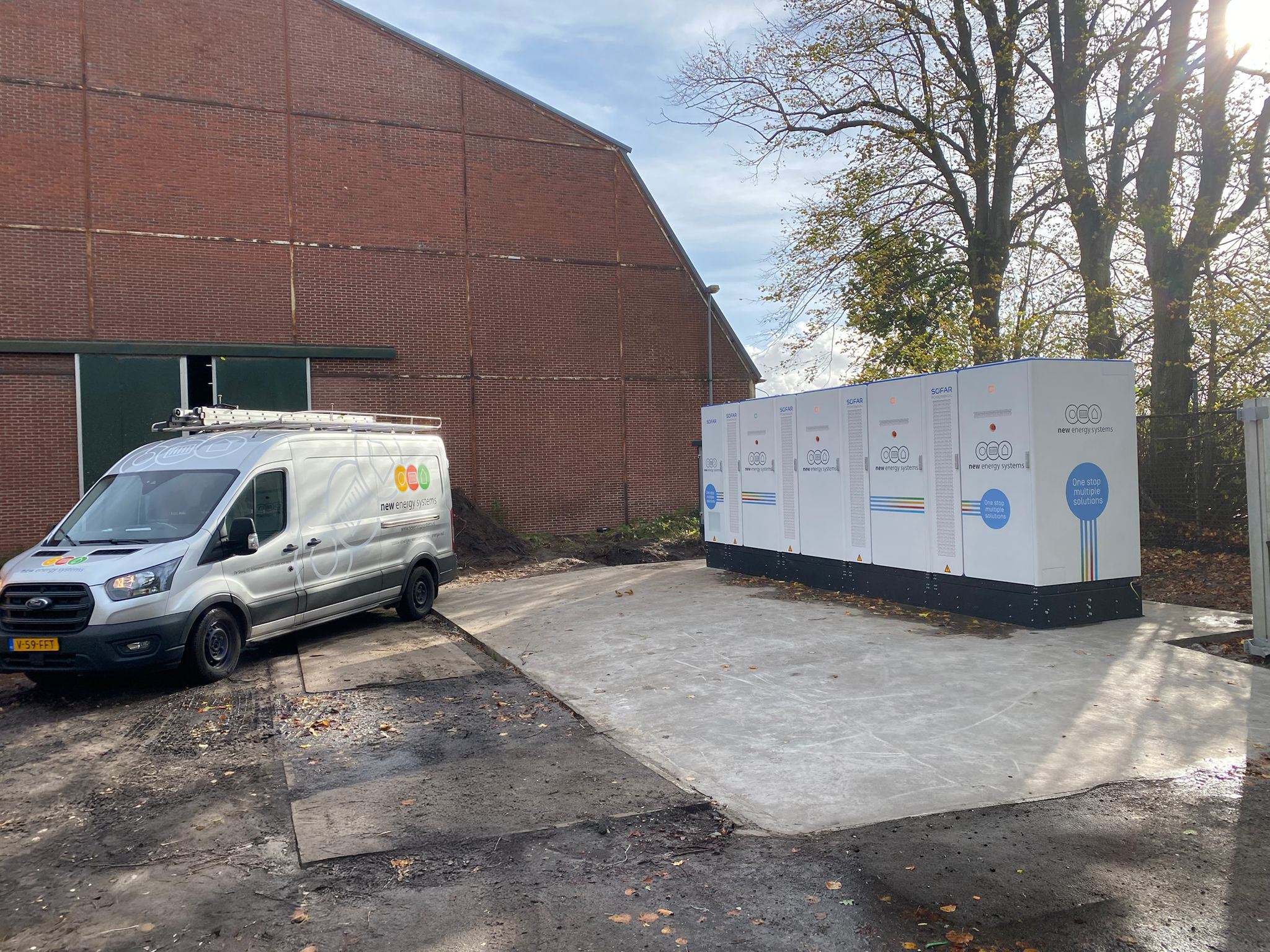 Bij Worldpaper realiseerde New Energy Systems een slimme totaaloplossing voor energieopslag en -beheer. We installeerden vier Powermagic Energie Opslag Systemen (EOS) van SOFAR, aangestuurd door de New Energy Manager®, het intelligente brein dat alle installaties met elkaar verbindt. In combinatie met een Sofar Junction Cabinet ontstond een compacte maar krachtige installatie met een totaal vermogen van 500 kW / 1.032 kWh.